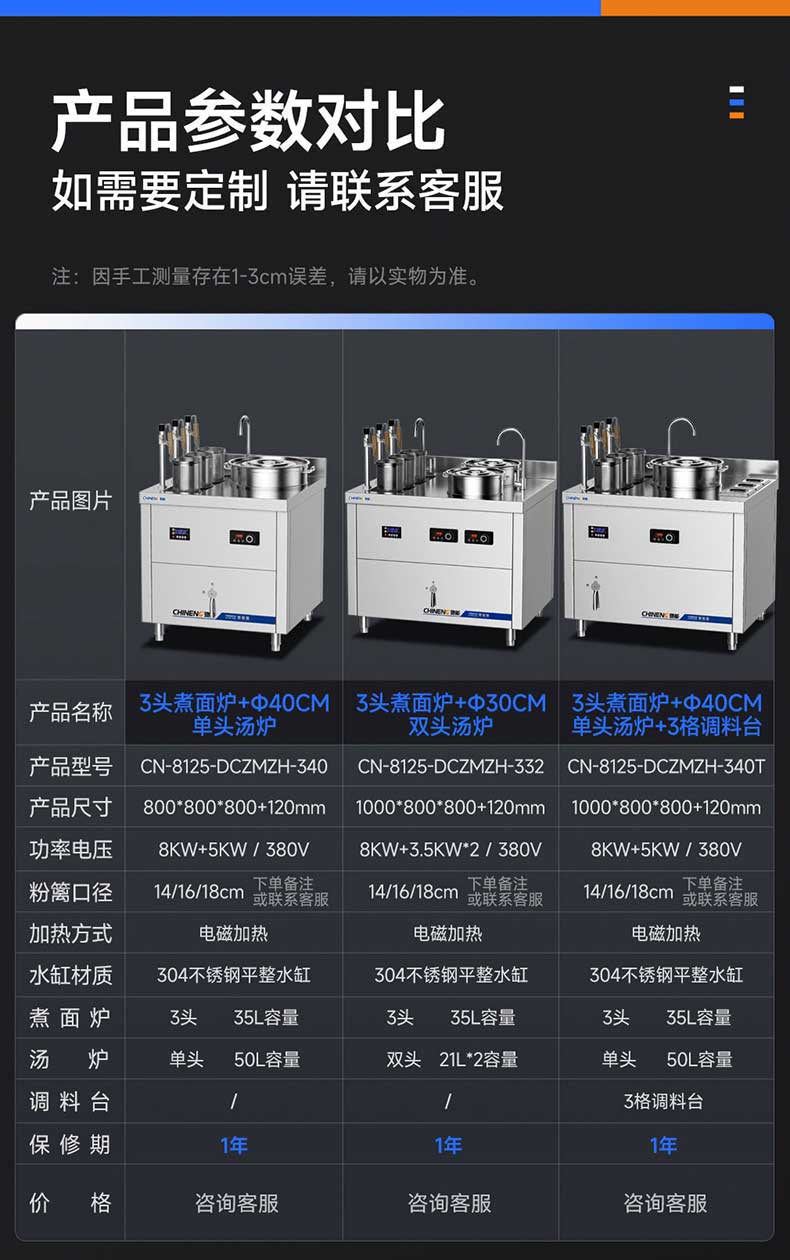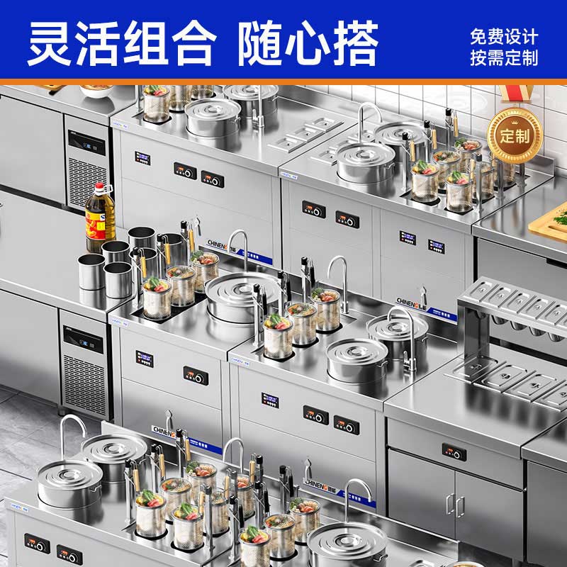 支持多种组合定制,可定制煮面炉/煲汤炉/调料台数量,台面长度自由延展,完美匹配牛肉面馆、米粉店、麻辣烫等差异化需求