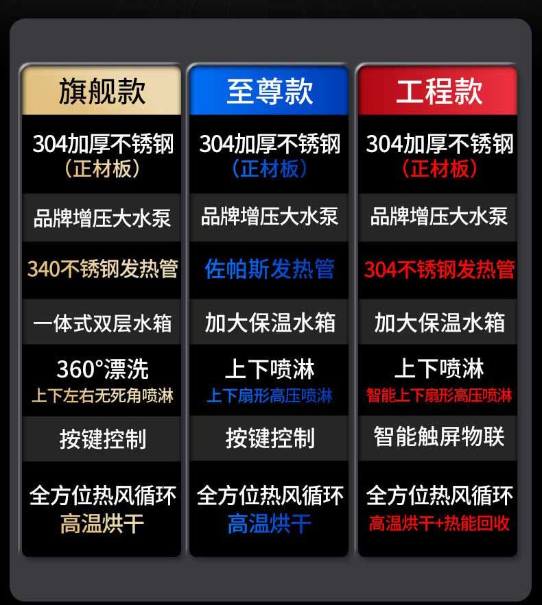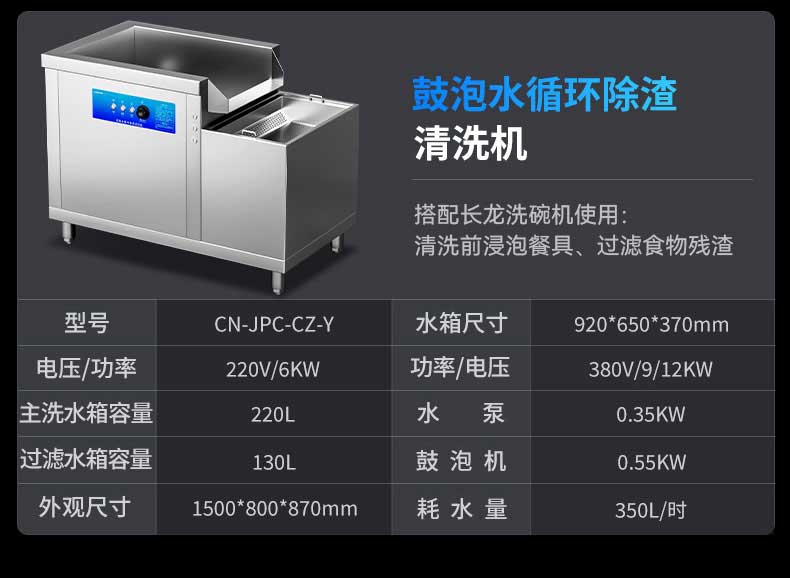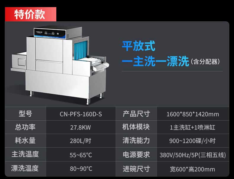 采用食品级304不锈钢材质,抗腐蚀且使用寿命长;出口配置自动启停保护装置,降低餐具破损风险。