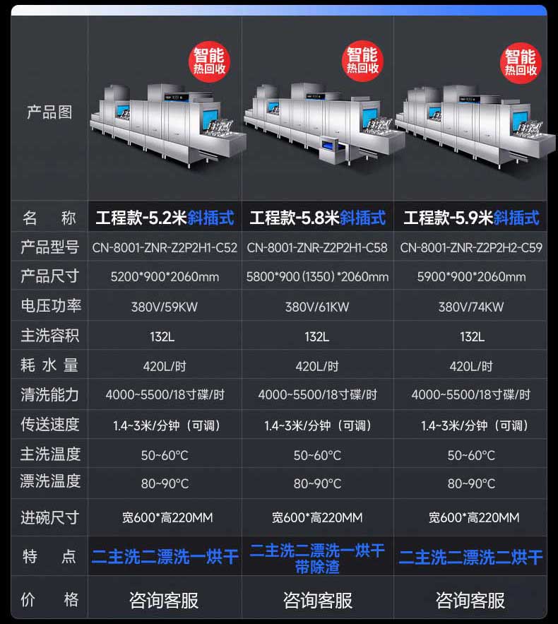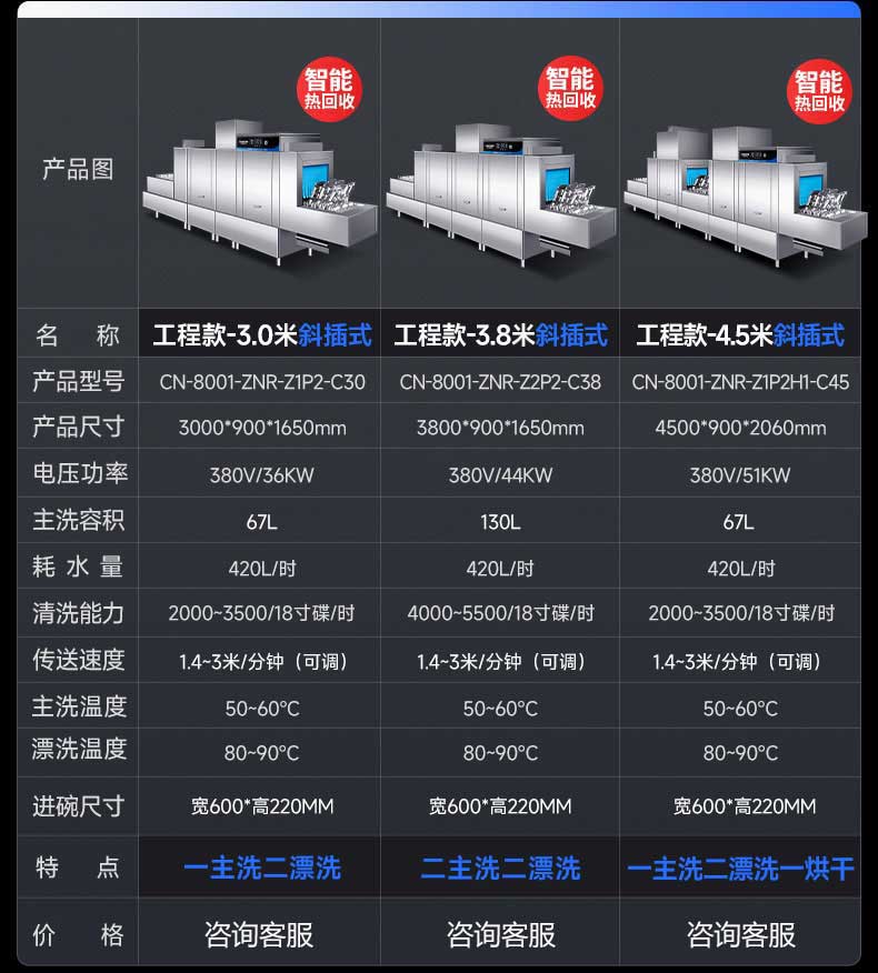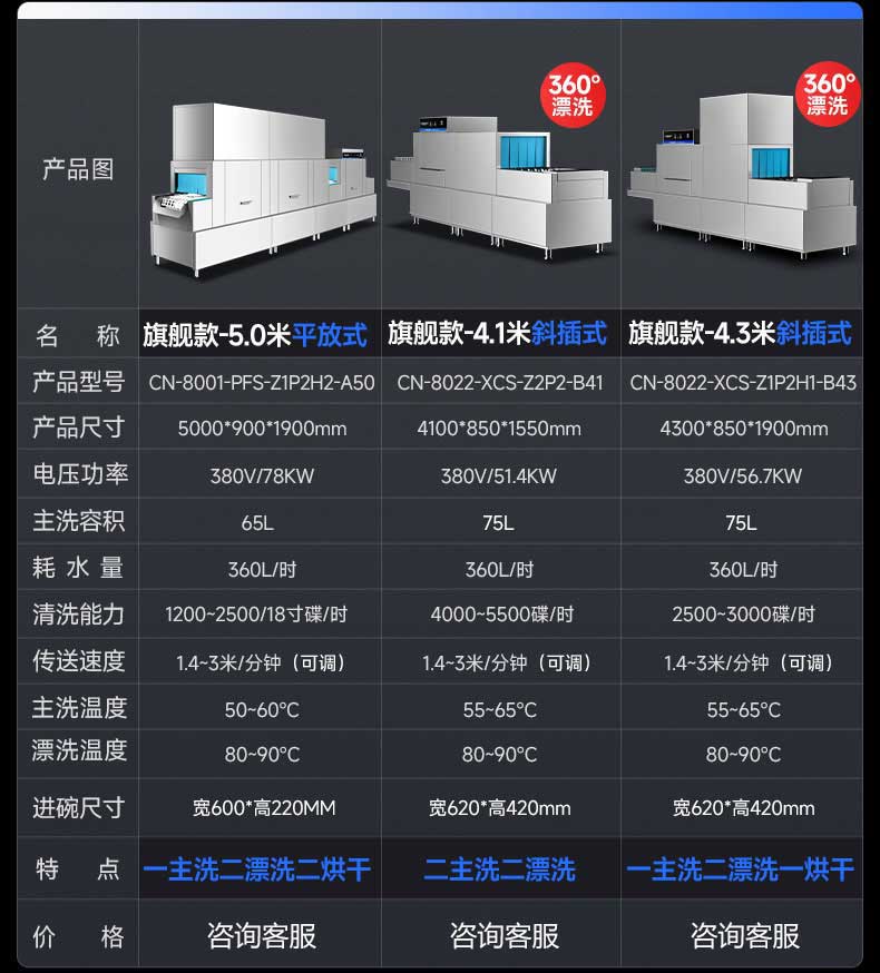 驰能商用长龙洗碗机结合了斜插式/平铺式设计与长龙式结构的特点,在清洁效率、空间利用及操作便捷性等方面具有显著优势,具体表现如下: