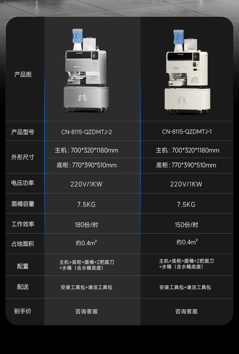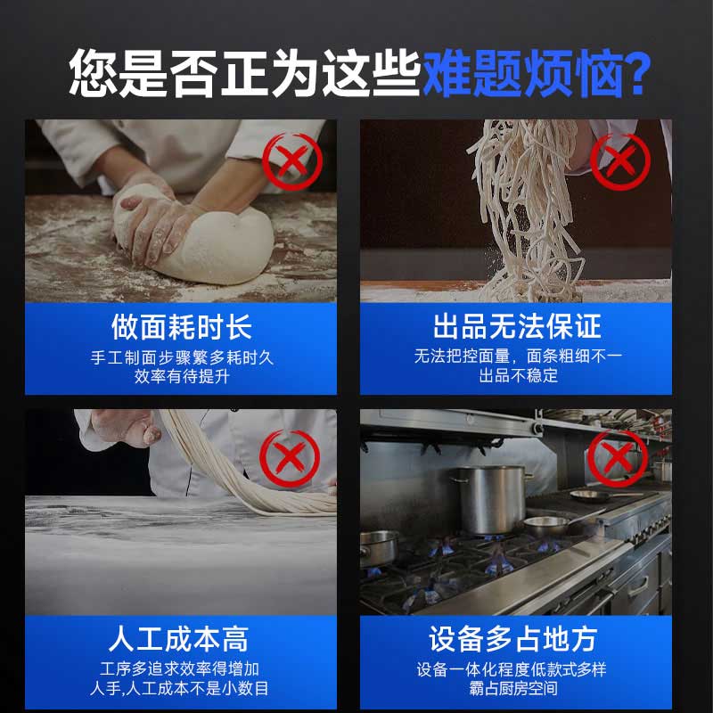 从和面、压面到定量出面全流程自动化,省时省力更省心。以科技赋能传统面食,提升出餐稳定性与品牌差异化价值,助创业者用更少投入撬动更高营收,轻松抢占鲜制面条赛道先机!
