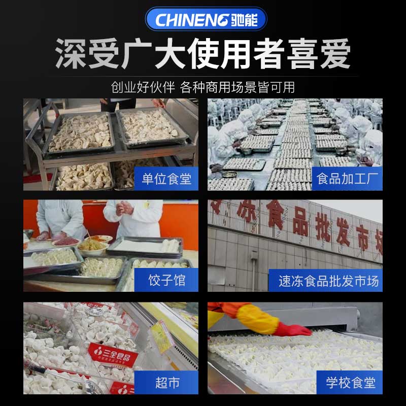 广泛适用场景:完美适配单位食堂、大型食品加工厂、饺子馆、速冻食品批发市场、超市、中央厨房等各种需要大批量、标准化生产饺子的商用环境。