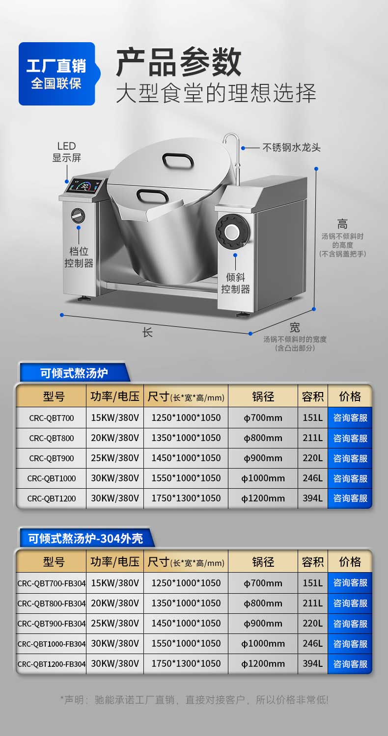 适用场景:中央厨房配送、大型企业/学校/机关食堂、团餐供应、宴席酒店、连锁餐饮熬汤间等。