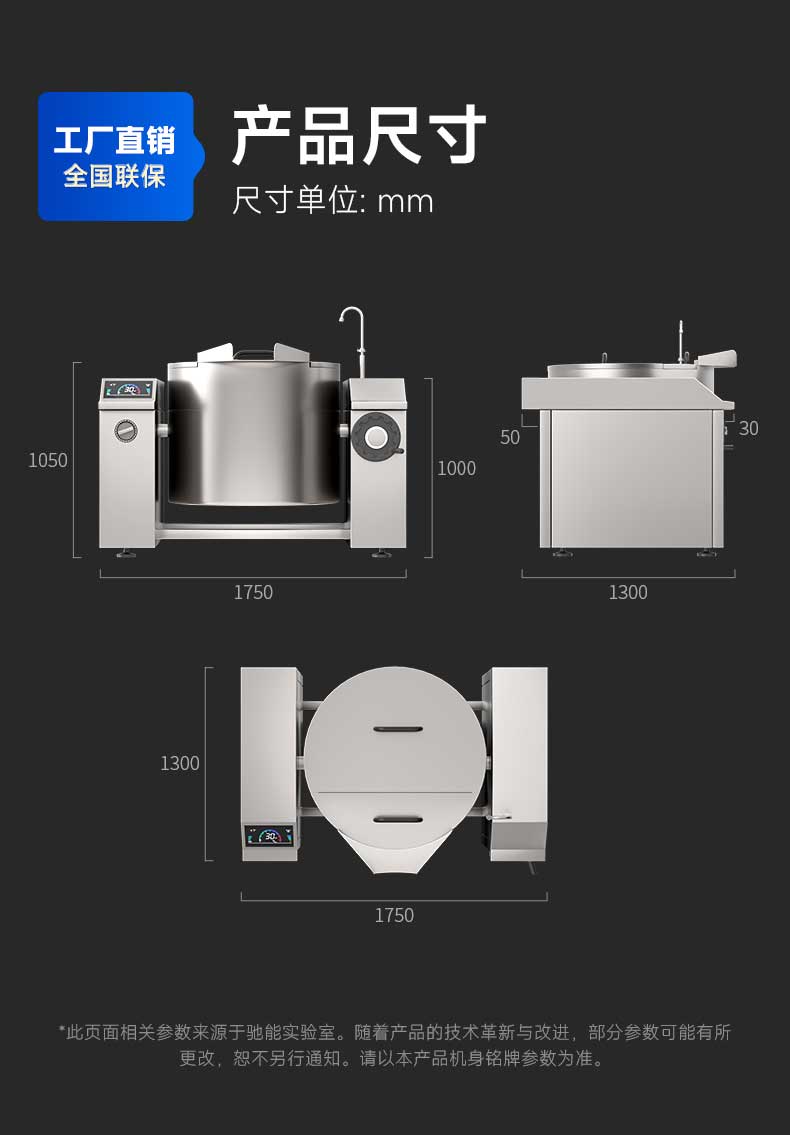 超大容量设计,单次即可满足百人以上汤品需求,出品稳定一致。是中央厨房集中配送、大型企业食堂、学校、机关单位及宴席厅等高人流量场所的理想选择,显著提升产能效率。