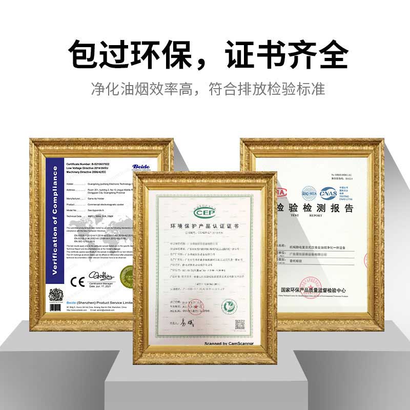净化率高:高低压一体净化,高效吸附油烟,符合环保排放标准。