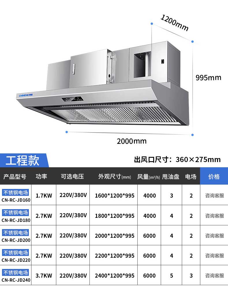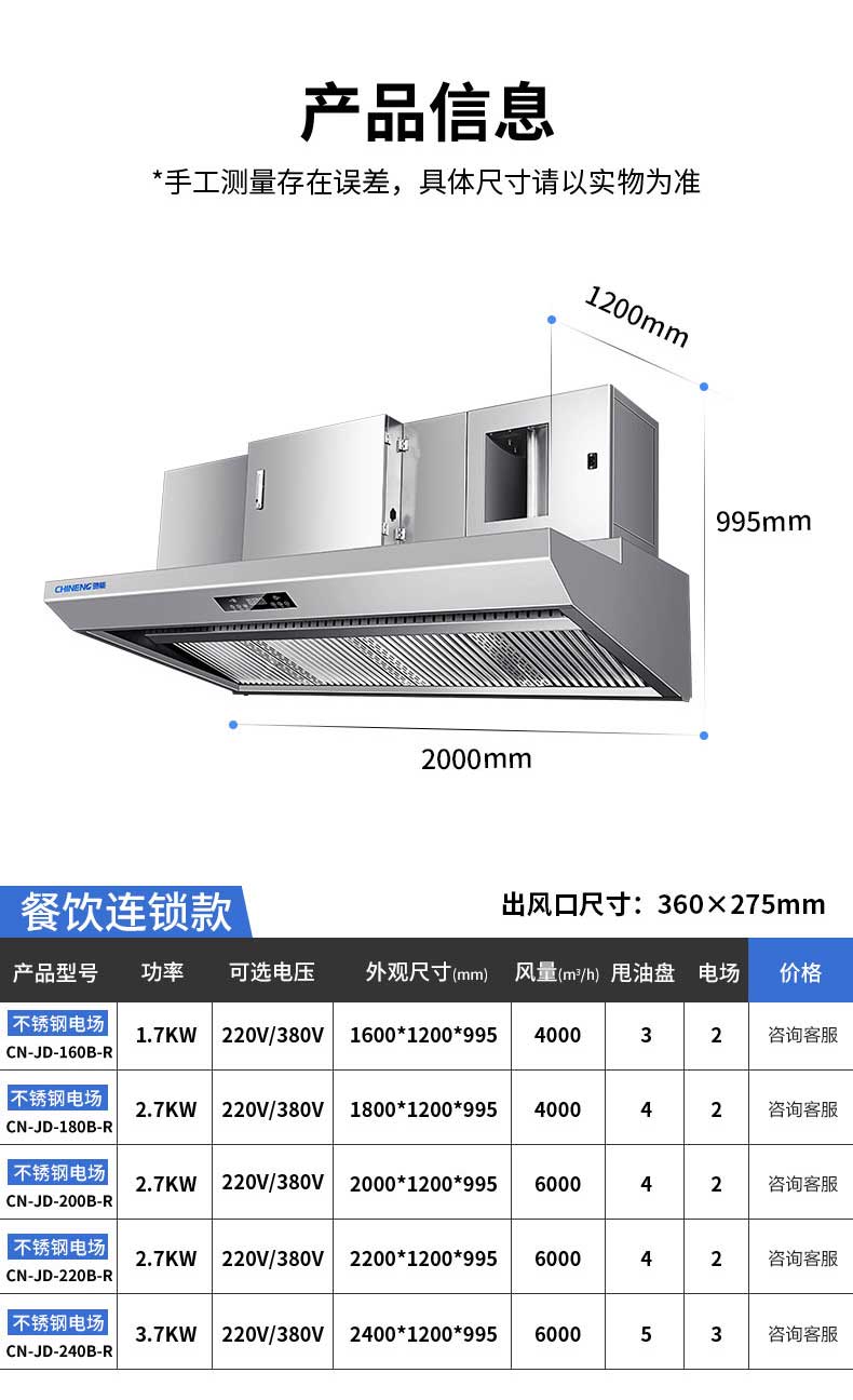 安装灵活:三大油烟排风口设计,可自由安装,适应不同场地需求。