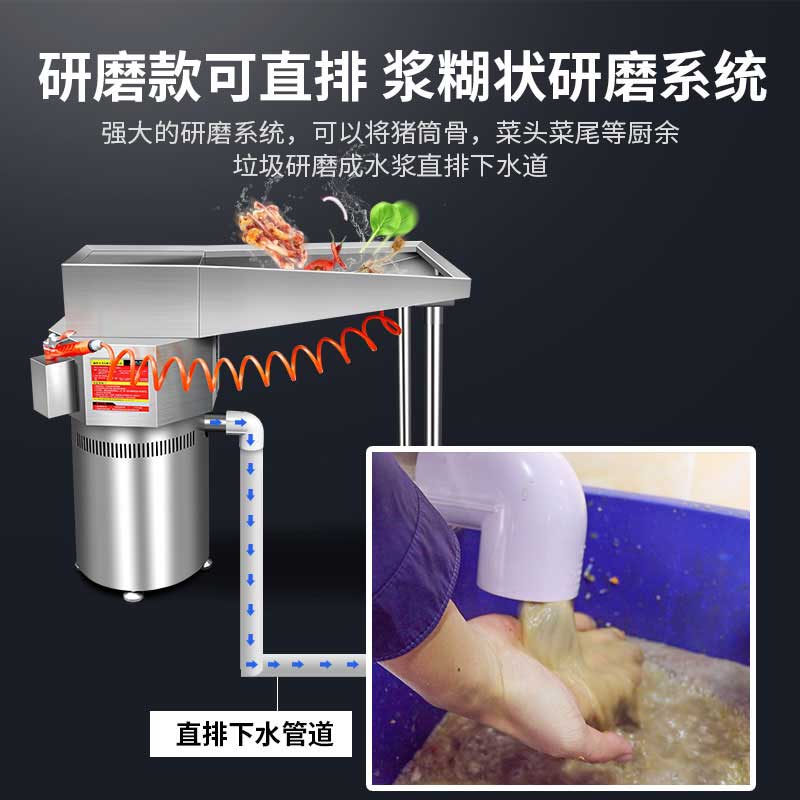 精细研磨,直排无忧:采用强力研磨技术,将硬质垃圾(如骨头)粉碎成细小颗粒或浆状,研磨后的水浆可直接排入下水道。